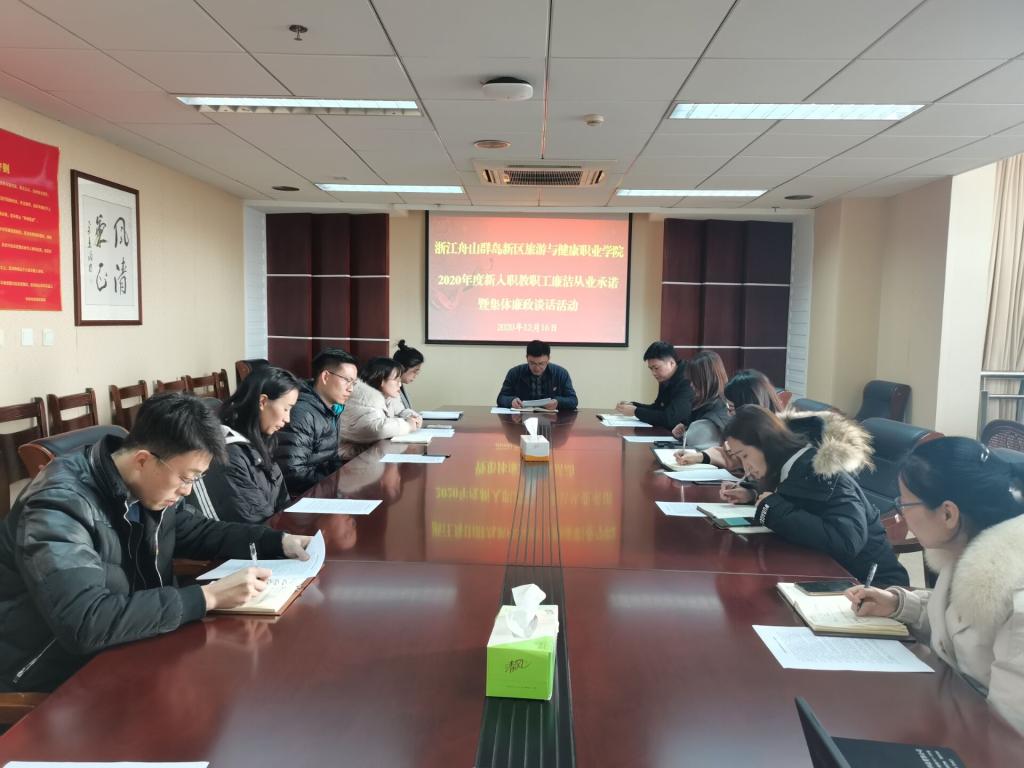 12月16日下午,校纪委组织2020年新入职教师开展“廉洁从业承诺暨集体廉政谈话活动”。