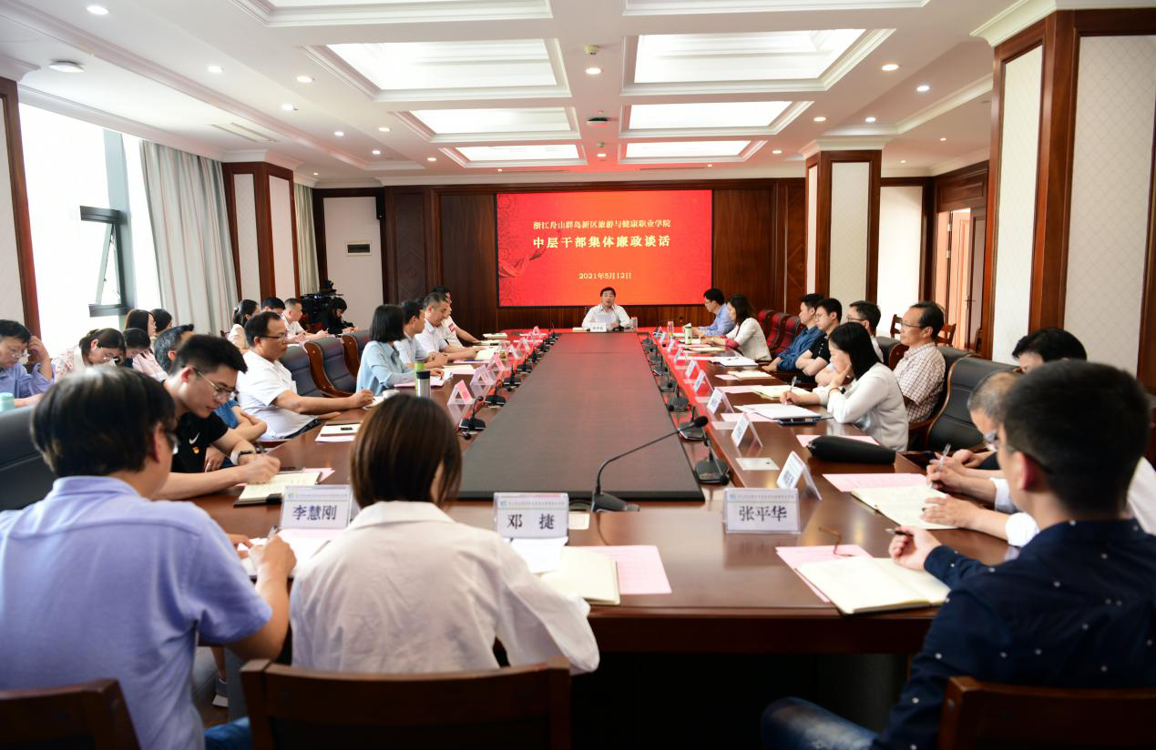 为进一步加强中层干部队伍建设,增强党员干部履职尽责、廉洁自律意识,深化落实全面从严治党和党风廉政建设,2021年5月12日下午,我校在求真楼二楼多媒体会议室召开中层干部集体廉政谈话会议,校党委书记姚奇富同志、校纪委书记方波同志出席会议并作集体廉政谈话,全体中层干部参会。会议由校纪委书记方波同志主持。