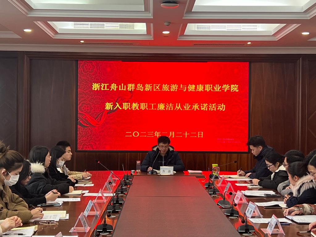 2月22日下午,校纪委组织2022年新入职教职工开展廉洁从业承诺活动。校纪委办主任沈伟领学《新时代高校教师职业行为十项准则》。14名新入职教职工庄重签订《廉洁从业承诺书》,承诺将秉承“知行合一,止于至善”的校训,永葆舟旅健人清正廉洁的本色,做到爱岗敬业、廉洁从业。新教职工代表衡倩、陈勇作表态发言。