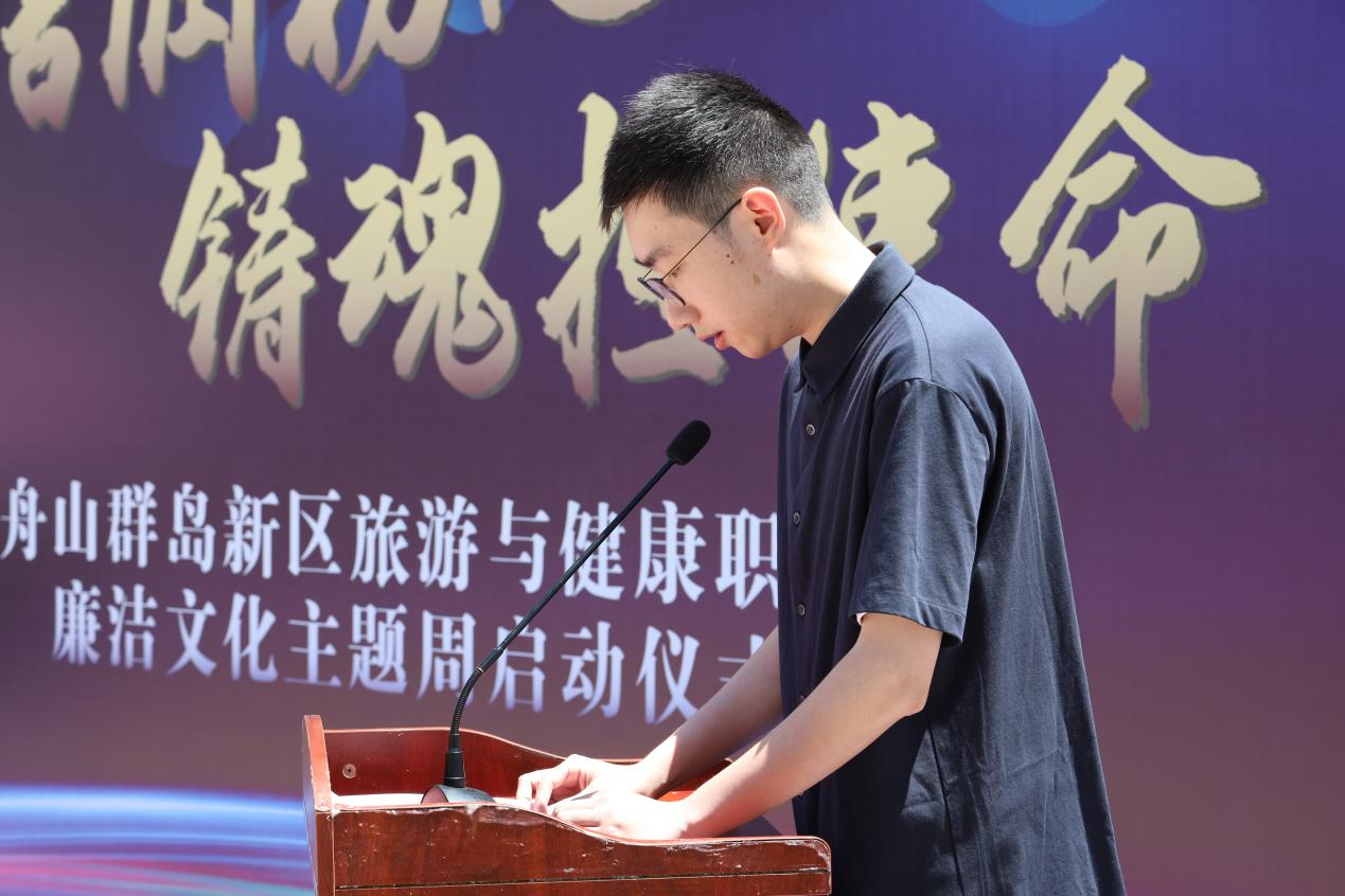 姚书记宣布首届“校园廉洁文化主题周”活动正式启动后,举行廉洁承诺签名活动,党员干部、师生承诺签名,承诺将秉承“知行合一、止于至善”的校训,永葆清正廉洁的舟旅健人本色,做到爱岗敬业、保持廉洁、慎微慎独。